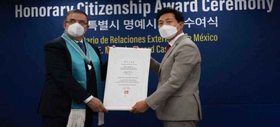 En el marco del 60 aniversario del establecimiento de las relaciones México-Corea, y a 30 años del hermanamiento de ambas capitales, el alcalde de Seúl, Oh Se-Hoon, nombró ciudadano honorario al canciller Marcelo Ebrard Casaubon por su contribución al fortalecimiento de la relación entre ambas naciones.